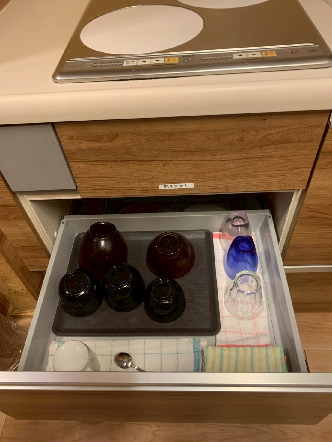 食器用洗剤・スポンジ・ごみ袋・ラップ・アルミホイルまで常備されていて「持ってきたけど使わなかった!」というものも多数。