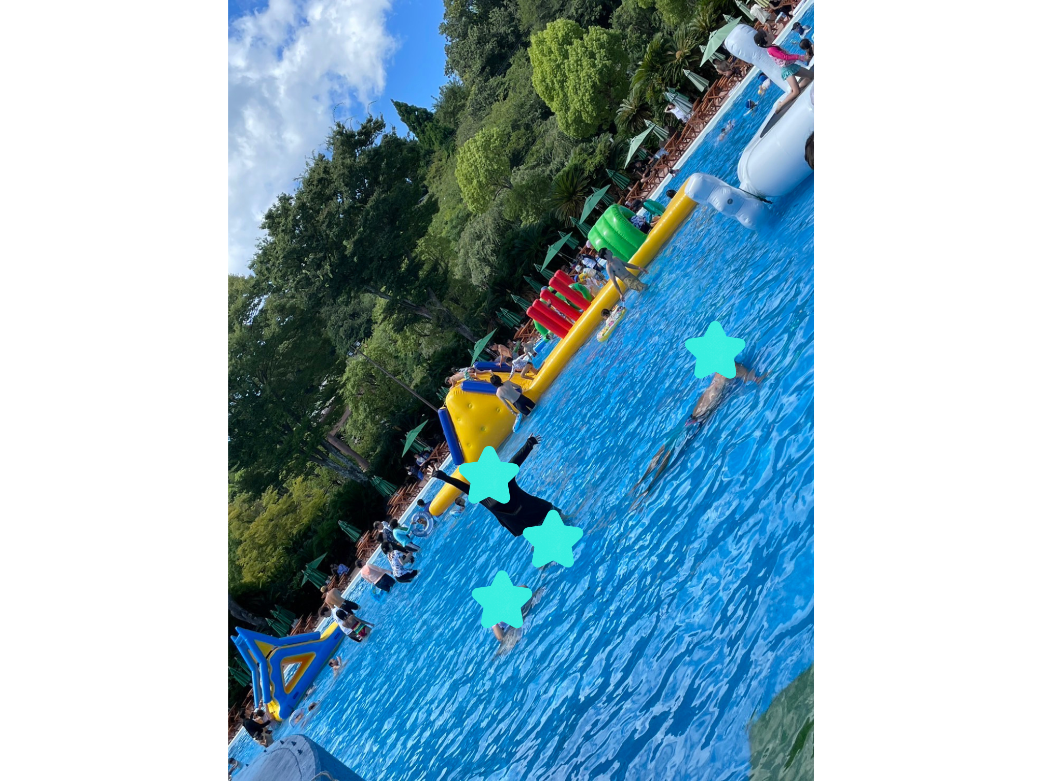滑り台やふわふわ遊具もあり、まるで水上のテーマパーク!